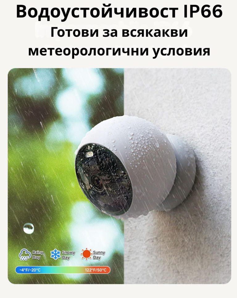 Здравата конструкция, сертифицирана по IP66, издържа на дъжд, прах, сняг и екстремни температури. Работи перфектно както на закрито, така и на открито, независимо от сезона. 8GB вътрешна памет съхранява всички ваши записи без допълнителни абонаменти. Включеният соларен панел осигурява непрекъснато захранване, превръщайки камерата в напълно автономна система.